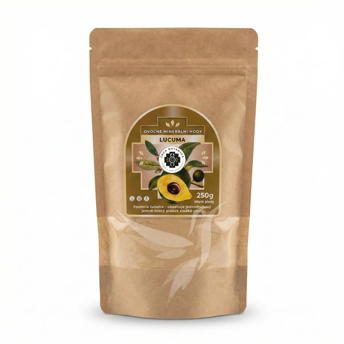 - 100 % prášok z lyofilizovaných plodov lucuma (Pouteria lucuma)