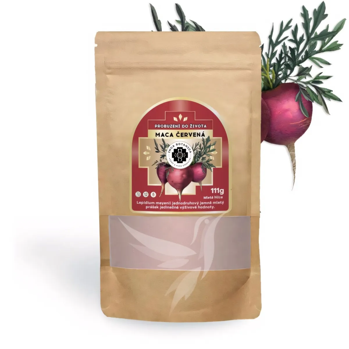 - 100 % červená maca peruánska, jemne mletý prášok