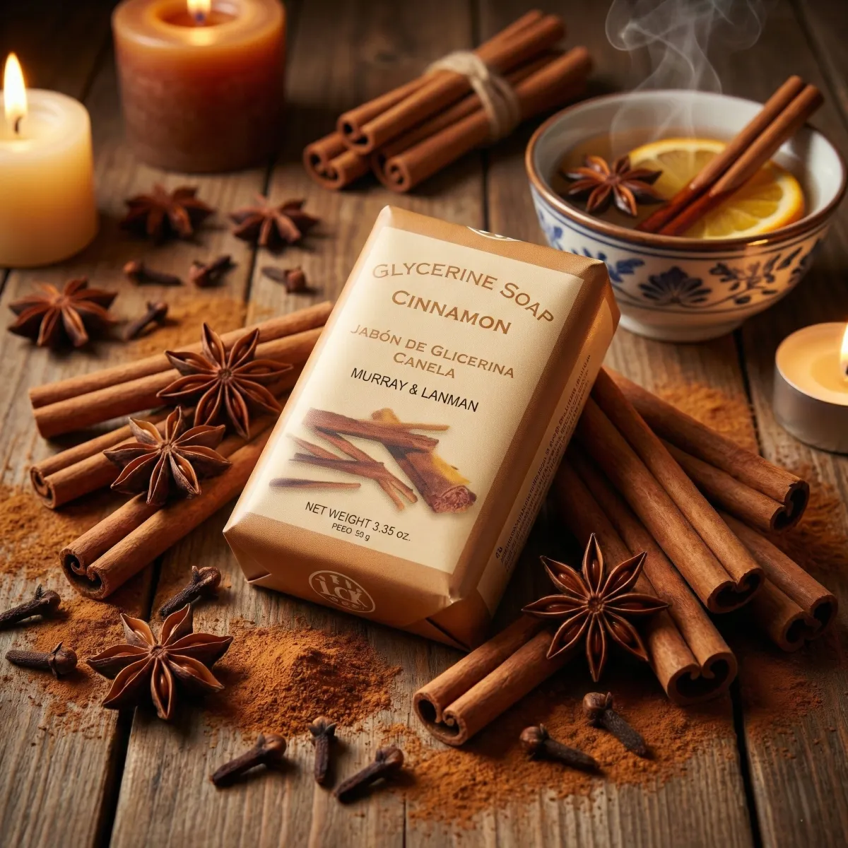 Prebuďte svoje zmysly s tradičným mydlom Murray & Lanman Cinnamon. Toto jedinečné mydlo s hmotnosťou 95g je obohatené o čistý škoricový esenciálny olej, ktorý je navyše doplnený o tóny muškátového orieška, pomaranča a klinčeka. Vďaka svojim prirodzene povzbudzujúcim a čistiacim účinkom mydlo jemne stimuluje pokožku, aktívne podporuje jej prekrvenie a zanecháva ju dokonale čistú, zatiaľ čo vás obklopí živá a hrejivá vôňa.