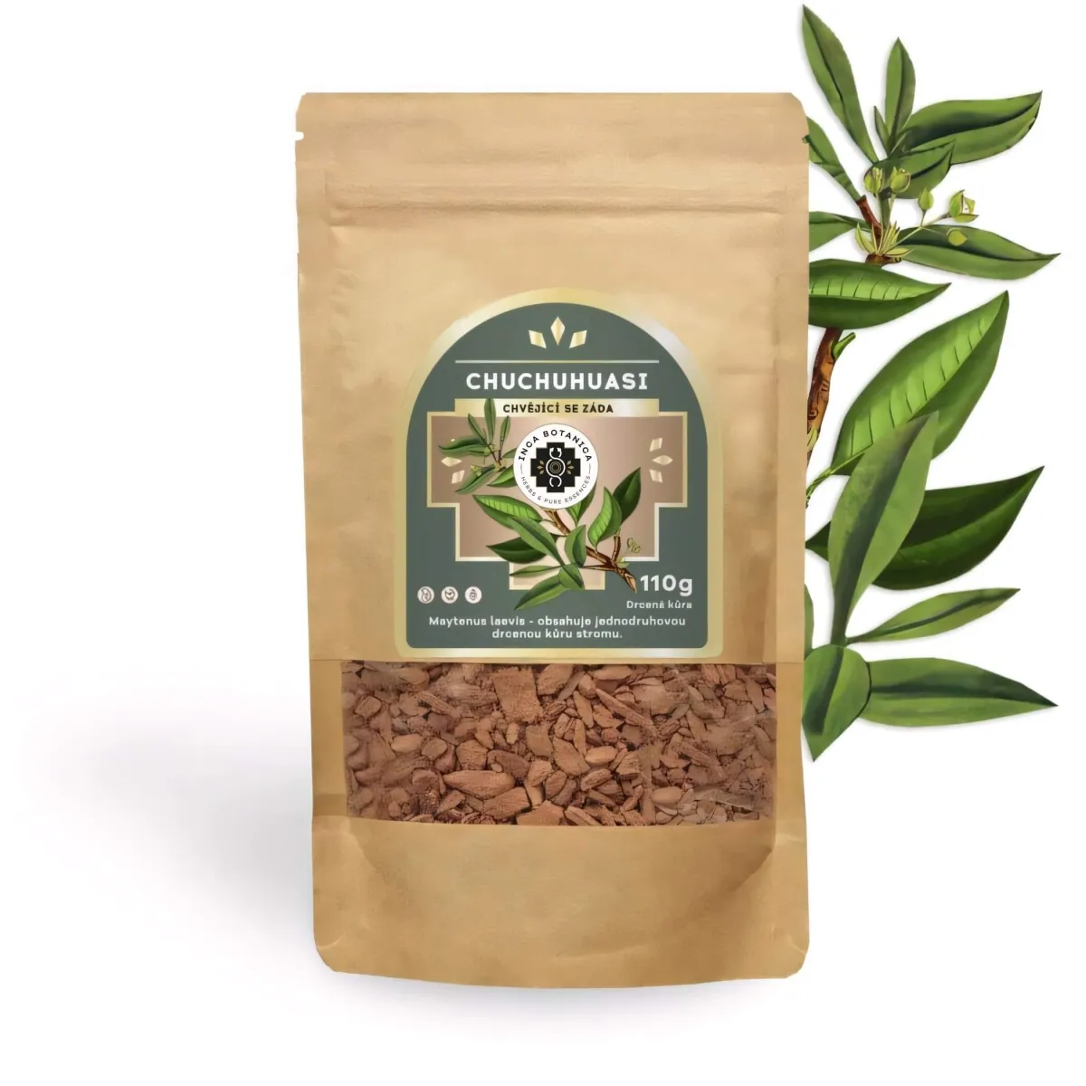 Chuchuhuasi od značky Inca Botanica je sušená kôra amazonských stromov Maytenus laevis (známeho aj ako Maytenus macrocarpa). Táto tradičná amazonská rastlina je známa svojím využitím v miestnej etnomedicíne pre široké spektrum účinkov. Juhoamerickí indiáni žijúci v povodí amazonky užívajú odvar z kôry chuchuhuasi ako tonikum na takmer všetky druhy zdravotných ťažkostí. Moderný výskum tohto tridsaťmetrového stromu (Maytenus leavis) a jeho pozitívnych účinkov na náš organizmus dodnes nie je u konca.