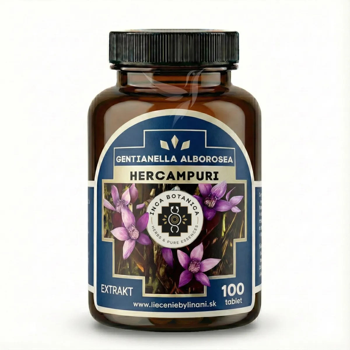 Hercampuri (Gentianella alborosea) je tradičná bylina pochádzajúca z vysokohorských oblastí peruánskych Ánd (približne 4 300 m n. m.), kde rastie na slnečných svahoch a horských lúkach a je známa svojimi nádhernými fialovými kvetmi. Jej zelené až tmavozelené stonky a listy, z ktorých sa získava extrakt, majú výrazne horkú chuť. V Peru sa bylina oddávna pripravovala vo forme odvarov, ktoré boli známe už v časoch Inkov. U nás sa nachádza vo forme čaju v bylinnej zmesi Modrý kvet.