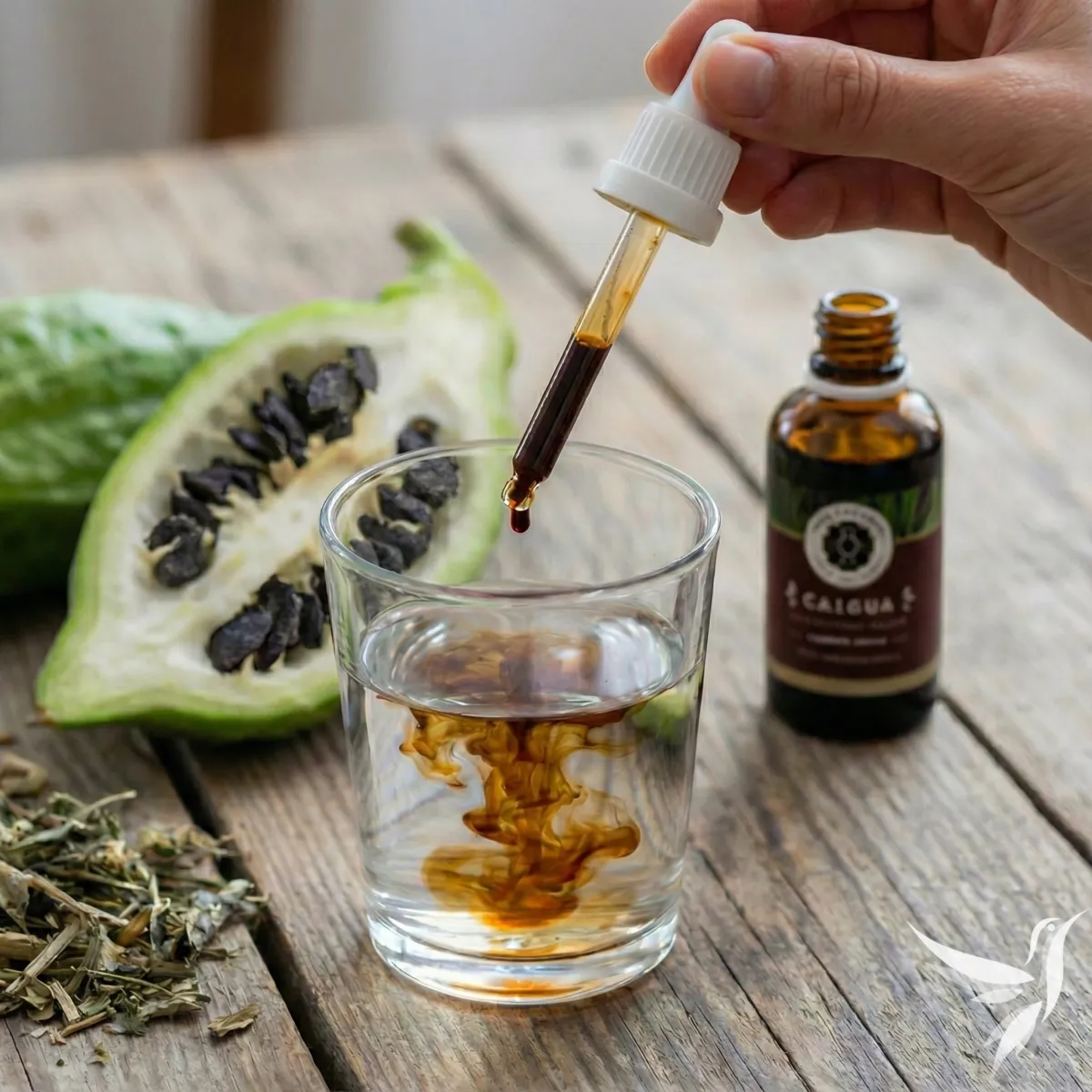 Caigua (Cyclanthera pedata) – vodný extrakt je šetrne spracovaný výťažok z tradičnej andskej rastliny, známej svojimi ľahkými plodmi bohatými na prírodné steroly, flavonoidy a saponíny. Rastlina pochádza z horských oblastí Peru a Bolívie, kde sa po stáročia používa ako súčasť rastlinnej výživy.