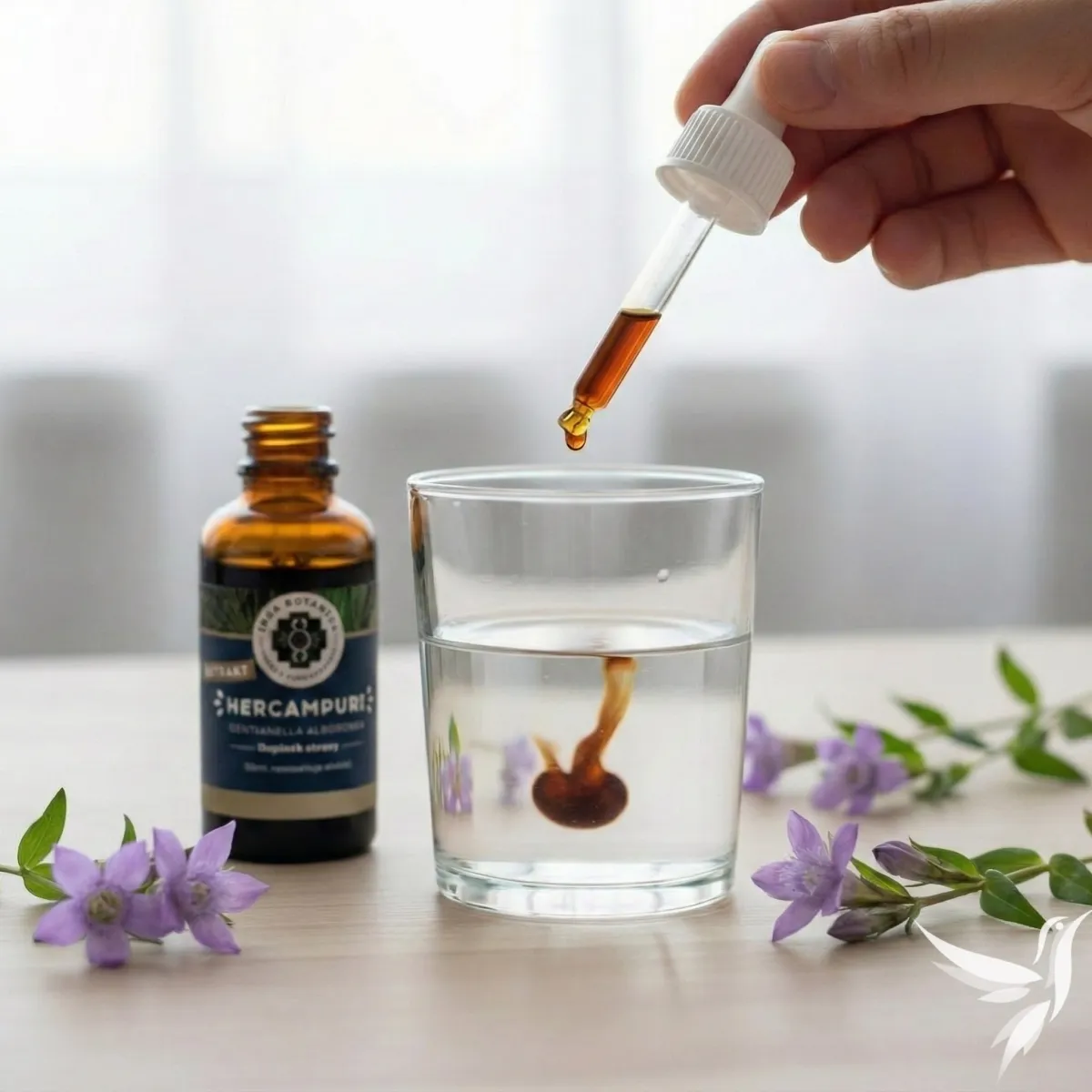 - Vodný extrakt z byliny Hercampuri (Gentianella alborosea, herba)
