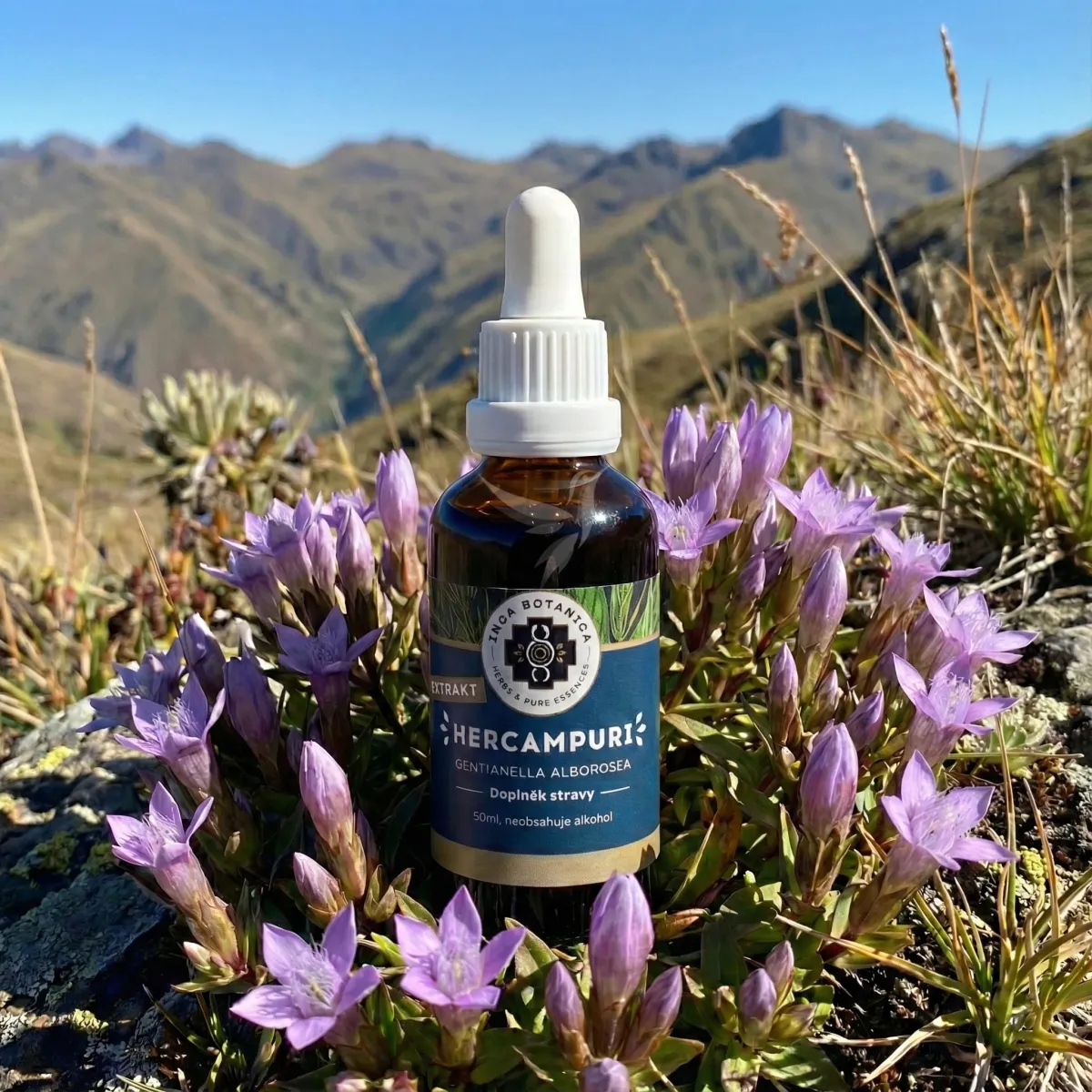 Hercampuri (Gentianella alborosea) je tradičná bylina pochádzajúca z vysokých oblastí peruánskych Ánd (cca 4 300 m n. m.), kde rastie na slnečných svahoch a horských lúkach a má krásne fialové kvety. Zelené až tmavozelené stonky a listy, z ktorých sa získava extrakt majú výrazne horkú chuť. V Peru sa bylina oddávna pripravovala vo forme odvarov, ktoré poznali už za čias Inkov. U nás je bylina vo forme čaju v ponuke v bylinnej zmesi Modrý kvet.
