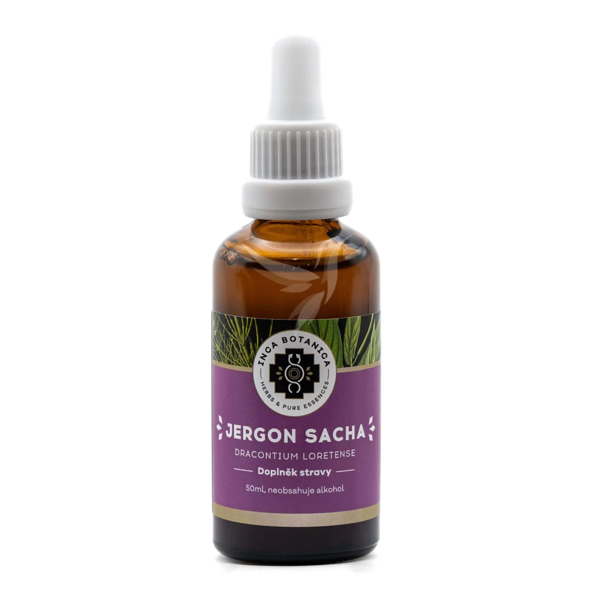 Jergon Sacha kvapky od Inca Botanica je extrakt z hľuzy amazonskej rastliny, ktorá je známa pod latinským názvom Dracontium loretense, spracovaný do formy bezalkoholovej tinktúry 50ml. Ide o rastlinu využívanú v tradičnom peruánskom systéme prírodnej medicíny amazonských indiánov, kde bola cenená pre svoje široké použitie. Jergon sacha je veľmi známa rastlina zložená z mohutného hľuznatého koreňa a stonky pripomínajúcej hada a je jednou z najpozoruhodnejších liečivých rastlín z oblasti amazónie a ánd. Produkt prináša túto tradíciu v štandardizovanej forme, vhodnej na jednoduché dávkovanie.