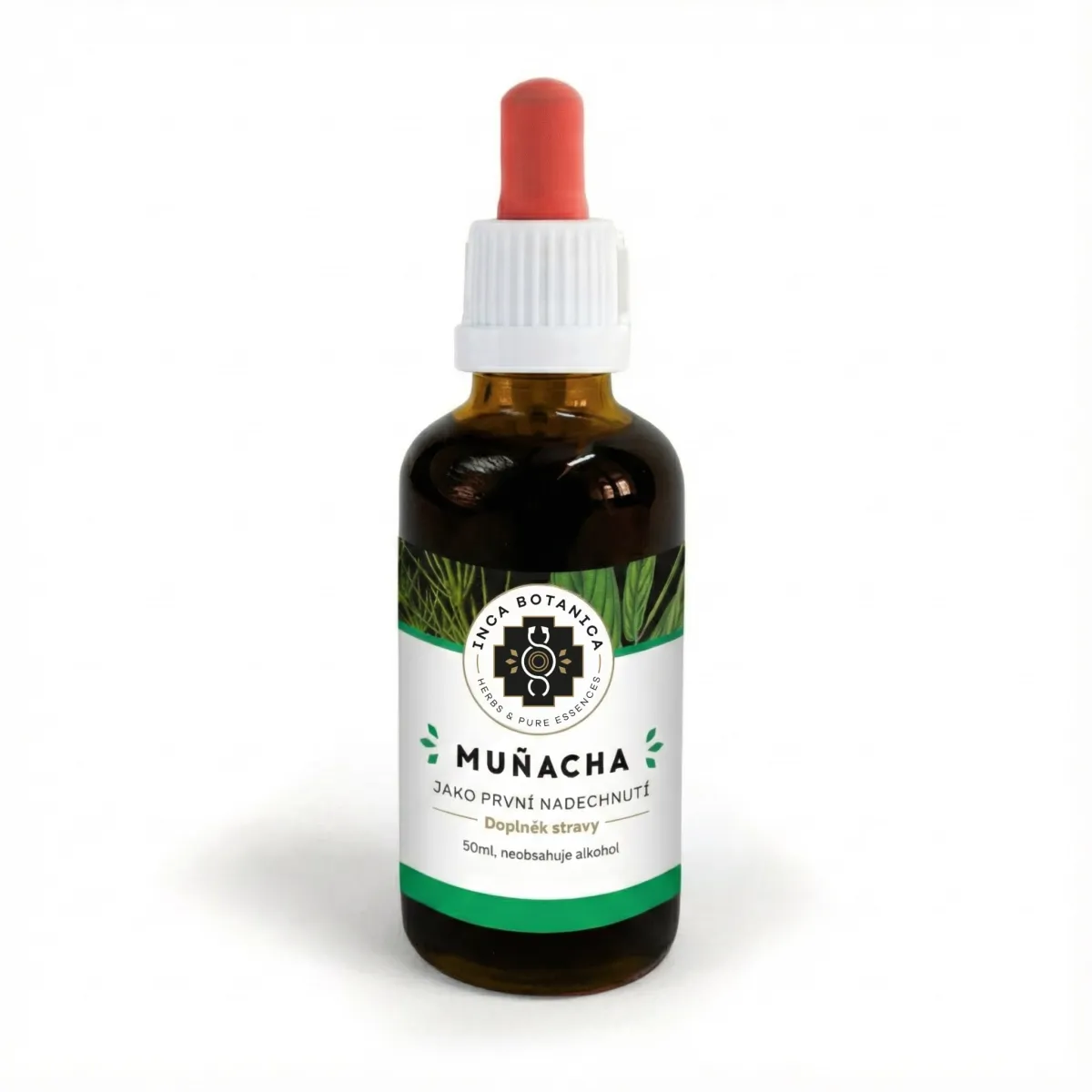 Munacha je vodný extrakt z troch tradičných juhoamerických rastlín – Muňa Muňa (Minthostachys setosa), Chuchuhuasi (Maytenus macrocarpa) a Wira Wira (Gnaphalium graveolens). Kombinácia andských a amazonských bylín prináša prirodzenú podporu vitality, dýchania a celkovej rovnováhy organizmu.