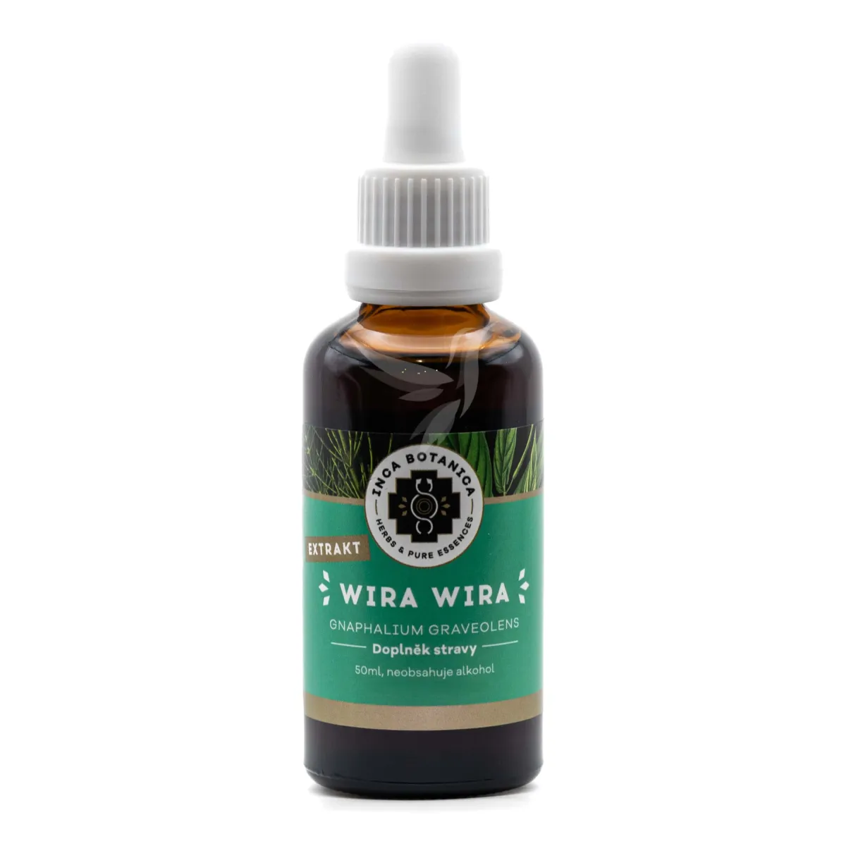 Jej chuť je ľahko horkastá a zemitá, no zároveň čistá a príjemná. Wira Wira pôsobí prirodzene a nenútene – ako by do šálky preniesla sviežosť horského vzduchu a tichú silu andských svahov. Preto je obľúbená v bylinných zmesiach ako napr. Respiro či Pralesná mäta, no ak preferujete čistý extrakt, naša bezalkoholová verzia je určená pre vás.