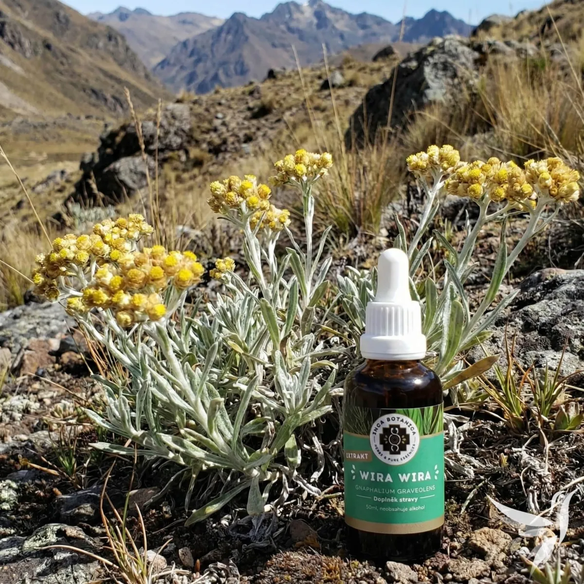 Zaujímavý fakt a ekológia: Wira Wira rastie vo výškach nad 2 500 m n. m., kde prežíva v extrémnych podmienkach slnka, vetra a sucha. Jej striebristo chlpaté listy fungujú ako prirodzený štít proti UV žiareniu a dehydratácii. Zber rastliny prebieha šetrne – zbiera sa len horná časť vňate, aby mohla opäť dorásť. Takto sa zachováva krehká rovnováha andského ekosystému a umožňuje, aby rastlina ďalej žila v rytme hôr, z ktorých pochádza.