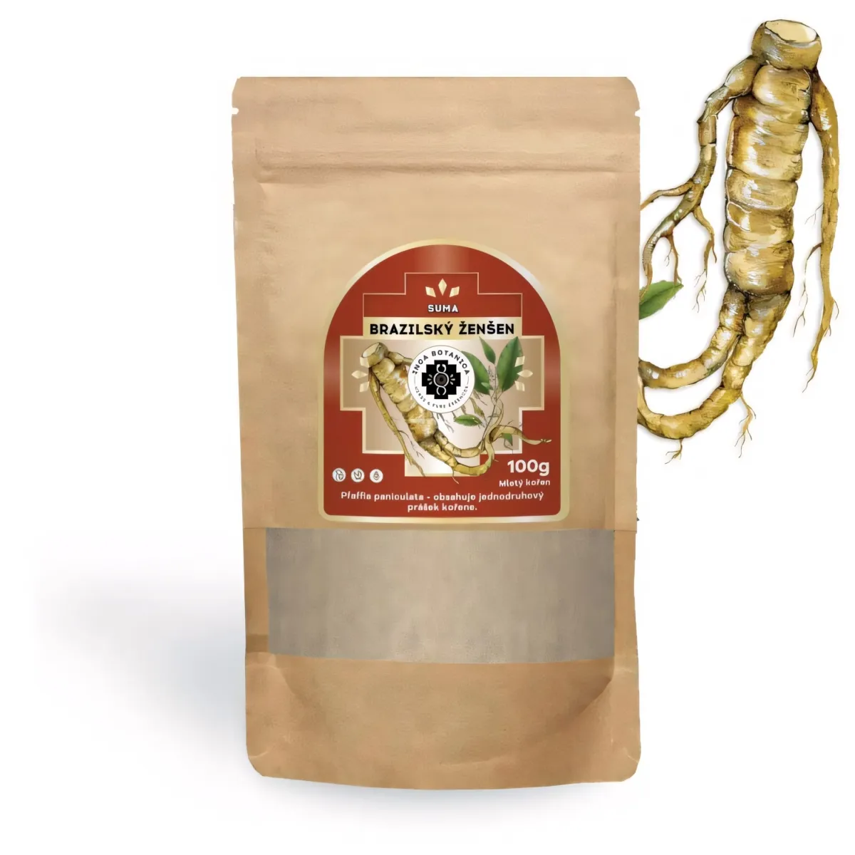 Brazilský ženšen – Suma (lat. Pfaffia paniculata) je výnimočná rastlina z amazónskeho dažďového pralesa. Koreň tejto rastliny zbierajú drobní pestovatelia v Brazílii, následne sa suší a melie na prášok. Ide o „nepravý ženšen“, ktorý bol tradične využívaný pôvodnými indiánskymi komunitami ako tonikum. V našej podobe ide o 100 % mletý koreň bez pridaných látok.