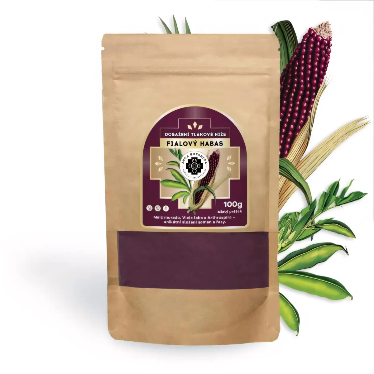 Fialový Habas je superpotravina vo forme jemne mletého prášku, ktorá kombinuje fialovú kukuricu (Maíz Morado), Habas (Vicia faba) a Spirulinu (Arthrospira). Výživový doplnok určený ako súčasť zdravej životosprávy.