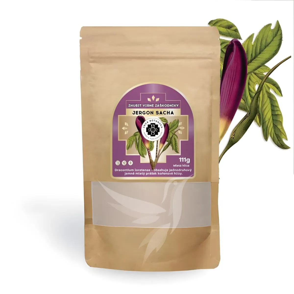 Jergon Sacha od Inca Botanica je máme vo forme jemne mletého prášku z hľuzy amazonskej rastliny, ktorá je známa pod latinským názvom Dracontium loretense. Ide o rastlinu využívanú v tradičnom peruánskom systéme prírodnej medicíny amazonských indiánov, kde bola cenená pre svoje široké použitie. Jergon sacha je veľmi známa rastlina zložená z mohutného hľuznatého koreňa a stonky pripomínajúcej hada a je jednou z najpozoruhodnejších liečivých rastlín z oblasti amazónie a ánd. Produkt prináša túto tradíciu v štandardizovanej forme, vhodnej na jednoduché dávkovanie.