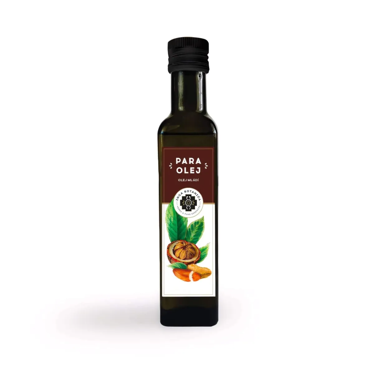 Para olej, známy aj ako olej mladosti, sa získava z jadier para orechov (Bertholletia excelsa), ktoré rastú voľne v dažďových pralesoch Južnej Ameriky. Olej je lisovaný za studena, čím si zachováva vysoký obsah prírodných živín, vitamínov a minerálov. Vďaka jemnej konzistencii sa rýchlo vstrebáva do pokožky, ktorú vyživí, a pritom nezanecháva mastný film.