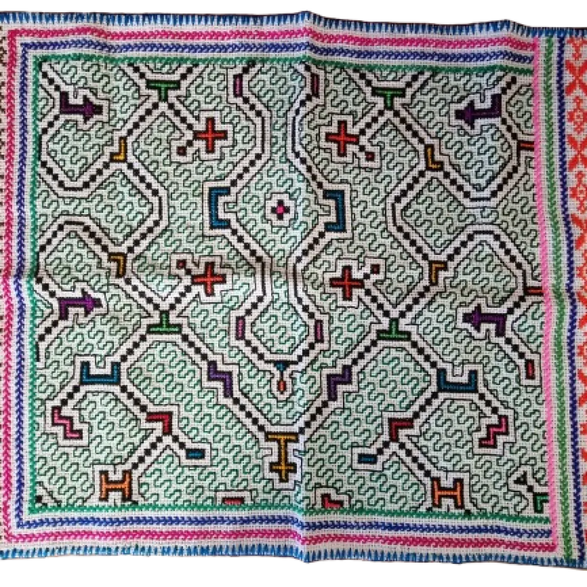 Ručne vyšívaná dečka indiánkami kmeňa Shipibo neďaleko Pucallpy s tradičnými vzormi.